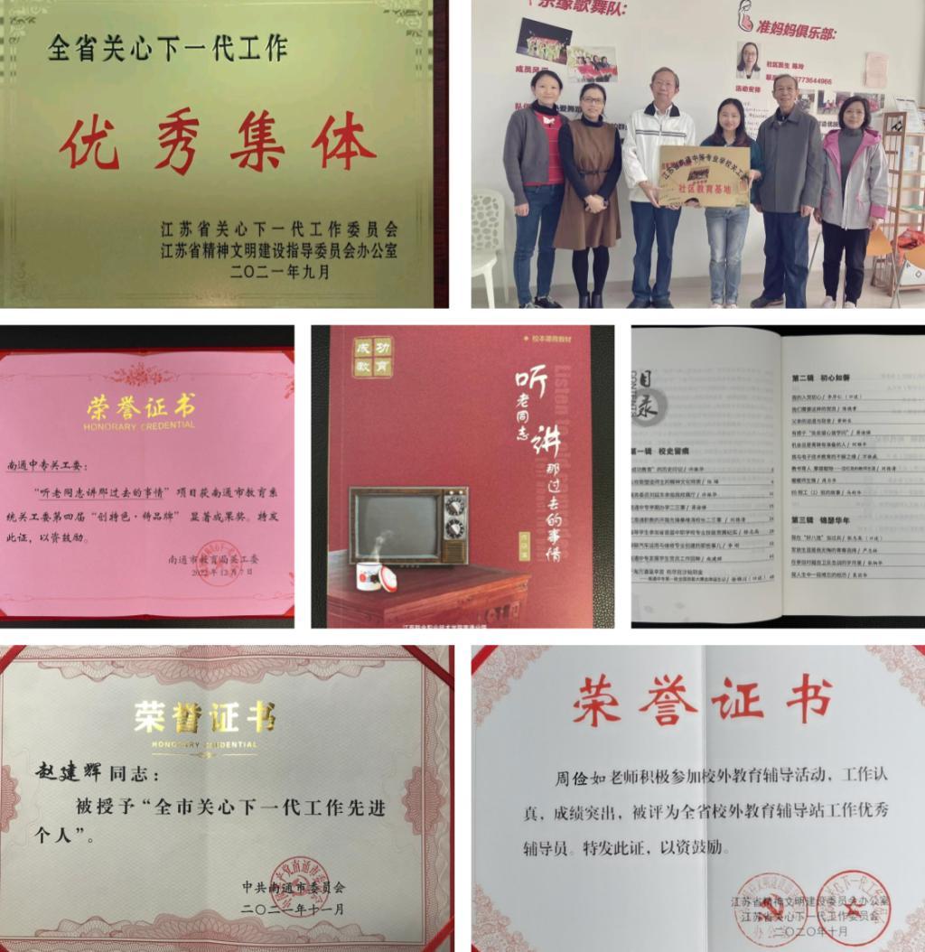 通过数年扎实建设,我校关工委在制度建设、品牌创新、队伍建设和工作实效等方面取得显著进展。2021年至今,学校先后获评“全省关心下一代工作优秀集体”“全市校外教育辅导站工作先进集体”;周俭如老师获评全省校外教育辅导站优秀辅导员,赵建辉同志获评全市关心下一代工作先进个人,何维平、李刚、沈宝成、严志林等多位老同志获评校级关心下一代先进个人。品牌项目“听老同志讲那过去的事情”获市教育局关工委第四届“创特色、铸品牌”项目实施显著成果奖,并在全市推广;“社区教育基地”项目获2024年市局直属学校关工委“创特色、铸品牌”项目一等奖。