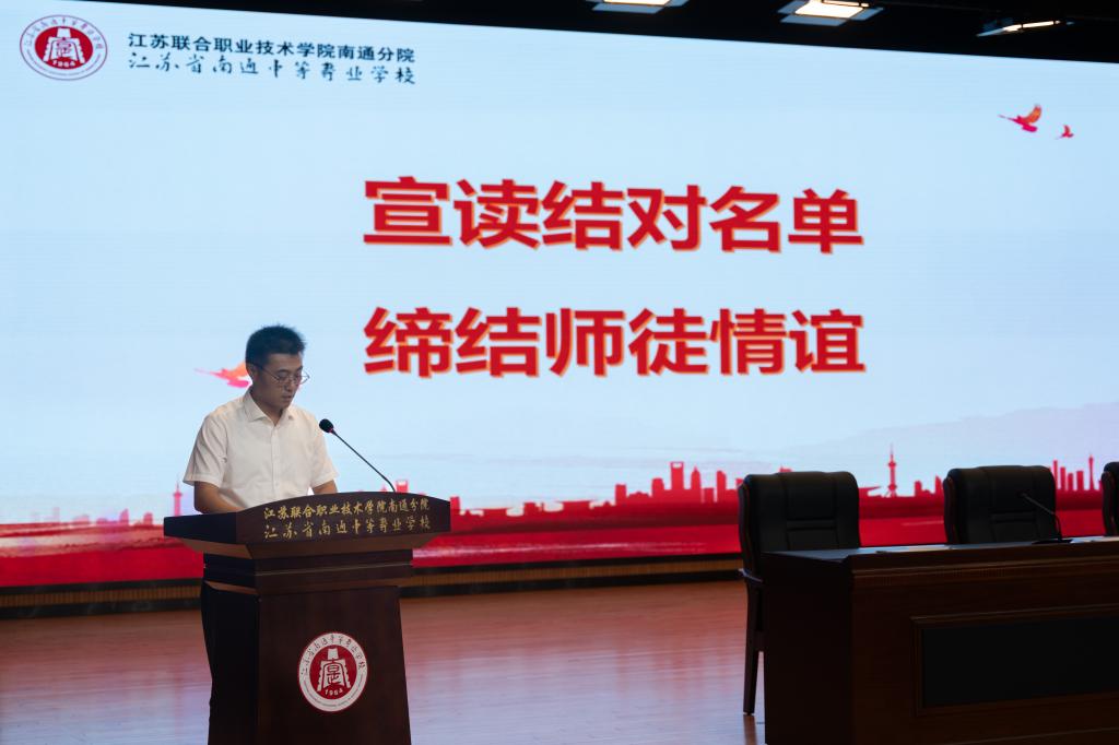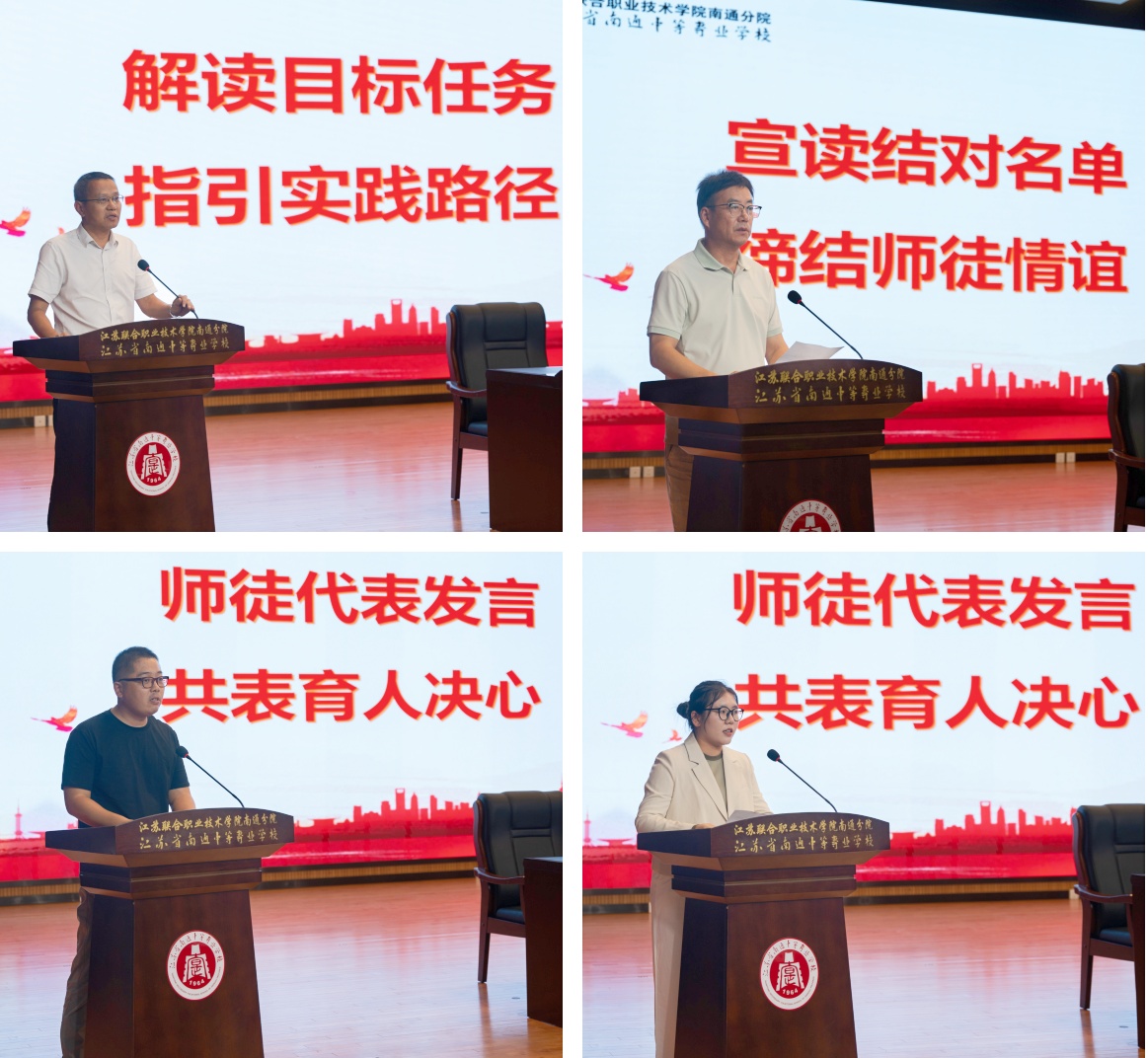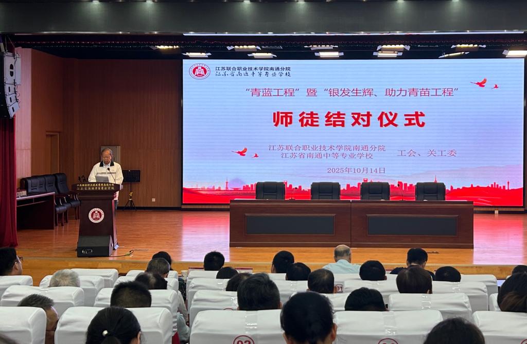 校工会主席季俊宣读了《关于聘请2025年度“青蓝工程”指导教师的通知》,明确了指导教师在教学、科研、师德等方面的“传帮带”职责。校关工委常务副主任赵建辉传达了市局关工委《关于印发<“银发生辉、助力青苗”工程实施方案(试行)>的通知》精神,解读了我校《“银发生辉,助力青苗”工程实施方案》,明确了老同志在思想引领、经验传承及协助规划方面的职责,以及青年教师主动请教、积极实践的要求。副校长朱建锋宣读了“银发生辉,助力青苗工程”结对名单。副校长陈建明结合自身作为“蓝方”教师的经历,对师傅们提出了“躬行”、“严教”、“善导”的具体要求。教务处处长梅崇金则从“定目标、守规则、常思考、出成效”四个方面,对师徒双方在教育教学和科研任务上提出了明确指引。